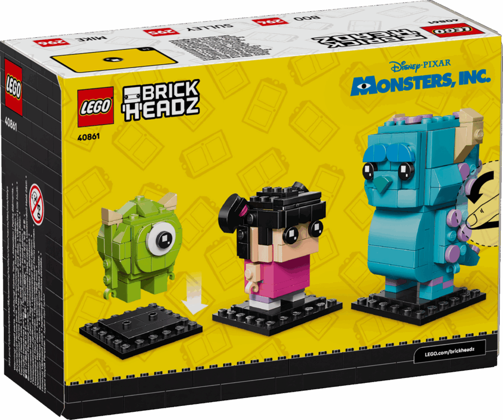 Táto stavebnica LEGO® Disney a Pixar obsahuje 3 postavičky Sulleyho, Mikea a Boo z kociek, no nechýbajú ani 3 stojany, aby sa dali vystaviť spolu alebo samostatne. Zostaviteľné verzie postavičiek z filmu Príšerky s.r.o. od Disney a Pixar sa pýšia dobre známymi detailmi vrátane Sulleyho rohov, Mikeovho oka v strede tváre a Booiných vrkočov. Jednotlivé figúrky merajú vyše 9 cm na výšku a 6 cm na šírku.